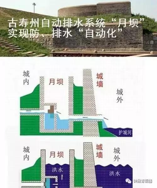 明朝万历时的知州杨涧修建现代化的排水系统,清朝乾隆年间的知州刘焕在其基础上又加筑了月坝,一 沿用至今。